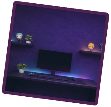 Platziere Monitore, Deko, Figuren und Möbel frei in deinem Raum und baue dein Setup genau so, wie du es dir vorstellst.